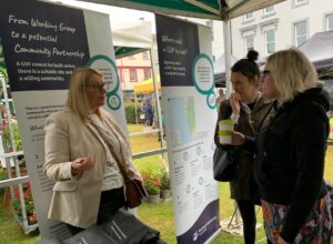 Community Engagement Manager Gillian Johnston talking with people at the Whitehaven Traders’ event.