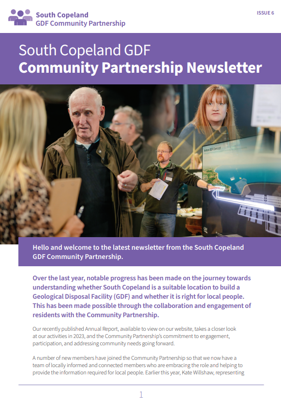Hello and welcome to the latest newsletter from the South Copeland GDF Community Partnership.
