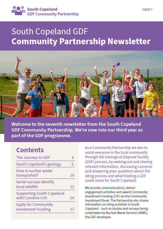 Welcome to the seventh newsletter from the South Copeland GDF Community Partnership. We’re now into our third year as part of the GDF programme.