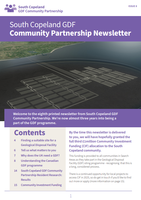 Welcome to the eighth printed newsletter from South Copeland GDF Community Partnership. We’re now almost three years into being a part of the GDF programme.